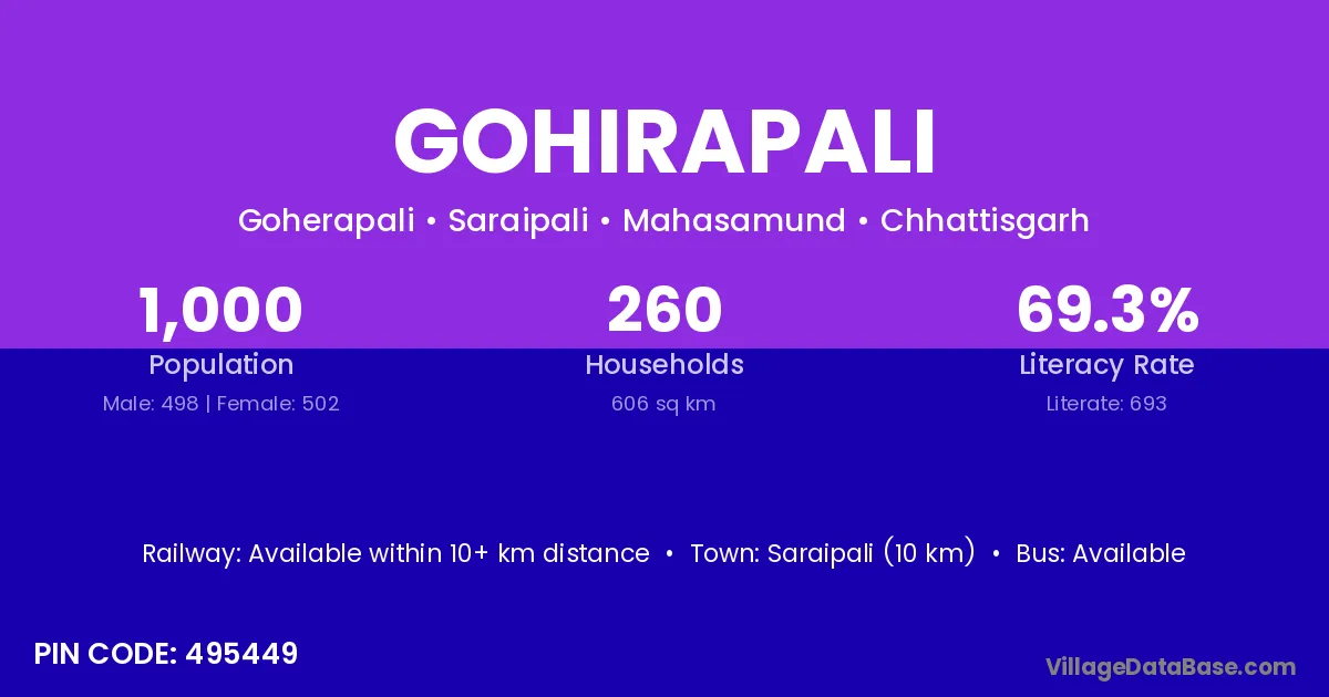 Gohirapali village is located in the Saraipali Tehsil of the Mahasamund district in Chhattisgarh .