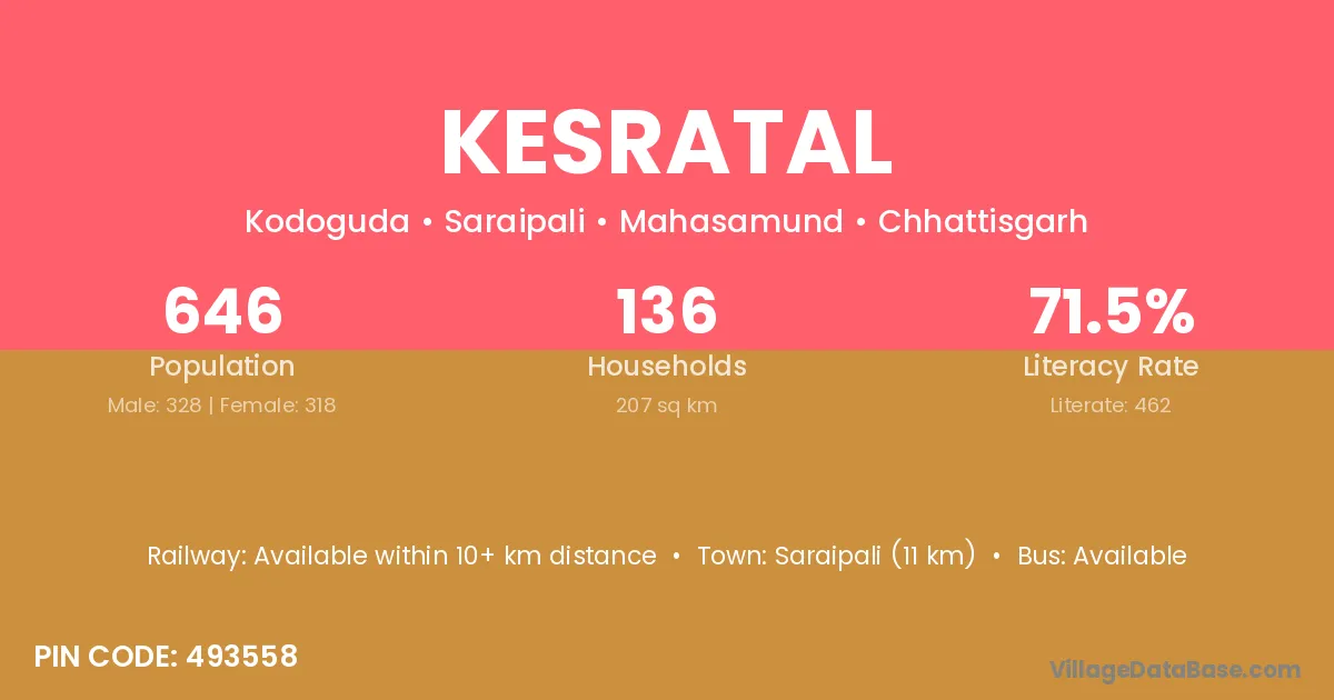 Saraipali (11 km) is the nearest town to Kesratal village for major economic activities and is located approximately 11 km away.