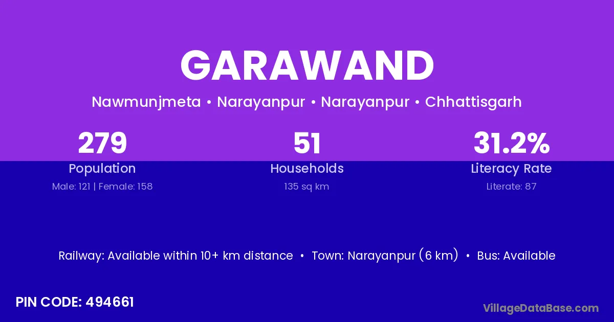 Narayanpur (6 km) is the nearest town to Garawand village for major economic activities and is located approximately 6 km away.