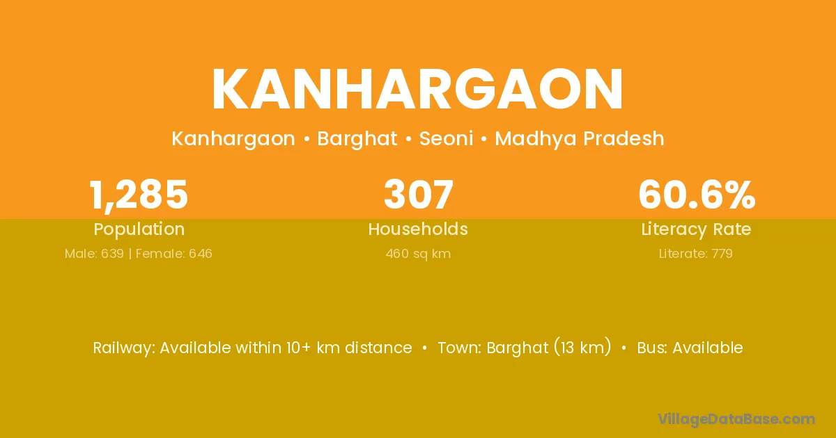 Kanhargaon village has a total population of 1,084 people, of which 542 are males and 542 are females.