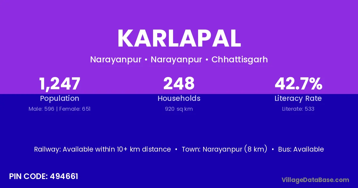 Karlapal village is located in the Narayanpur Tehsil of the Narayanpur district in Chhattisgarh .
