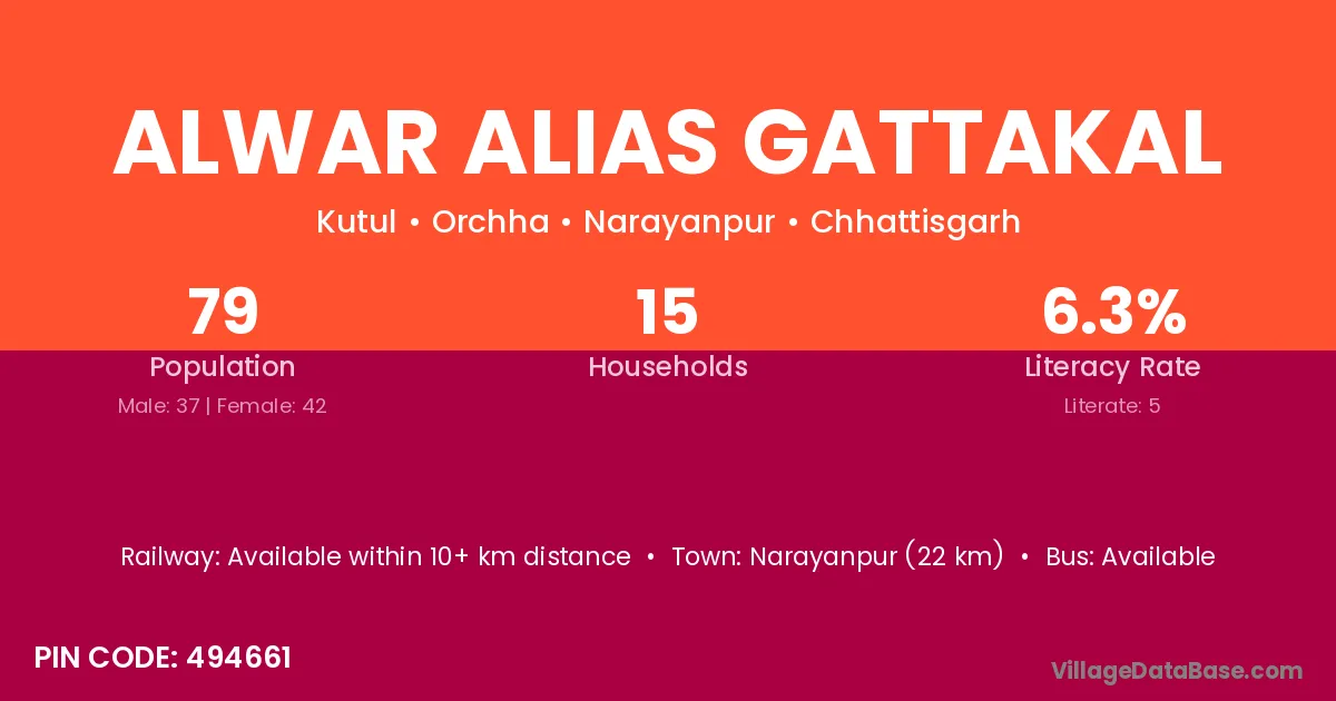 Alwar Alias Gattakal village has a total population of 79 people, of which 37 are males and 42 are females.