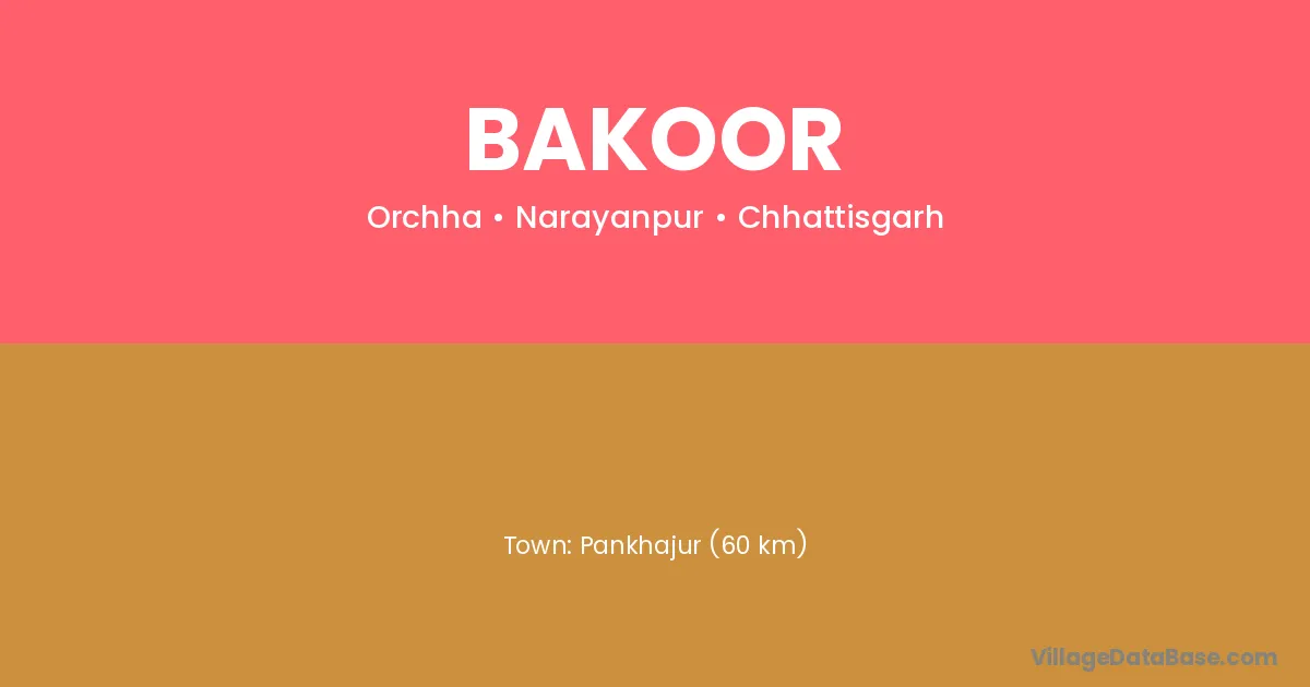 Pankhajur (60 km) is the nearest town to Bakoor village for major economic activities and is located approximately 60 km away.