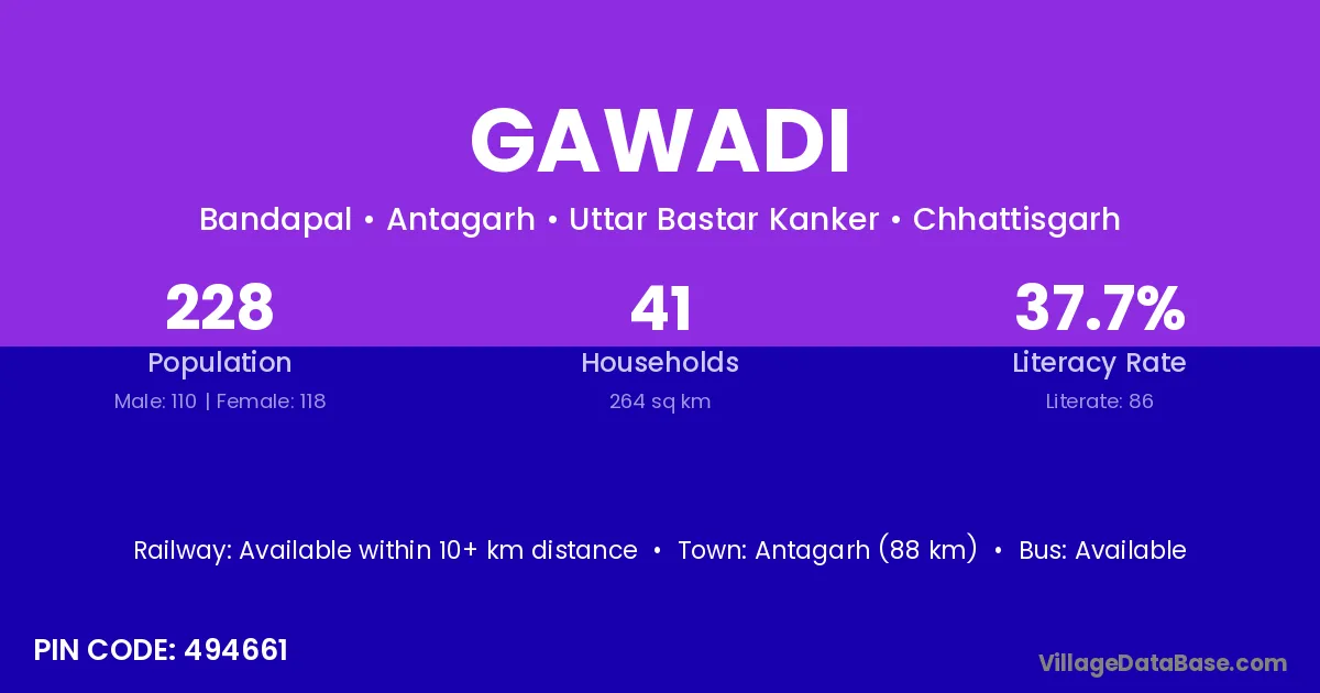 According to Census 2011 information, the village code of Gawadi village is 494230.