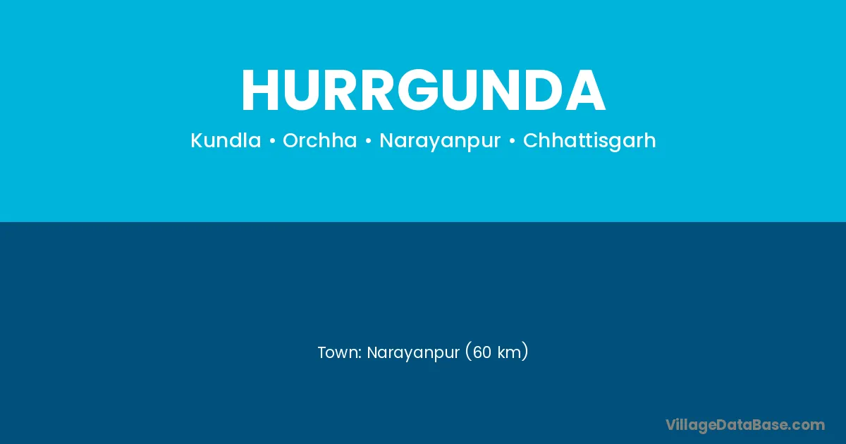 Narayanpur (60 km) is the nearest town to Hurrgunda village for major economic activities and is located approximately 60 km away.