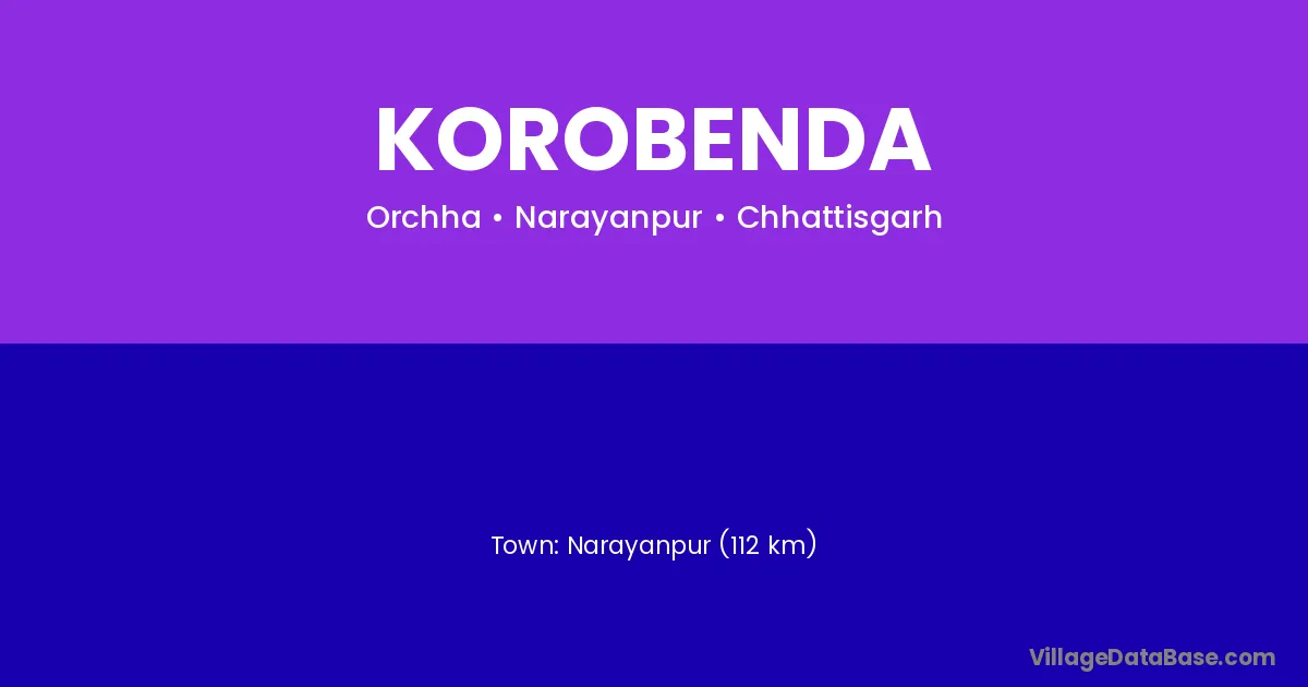 Narayanpur (112 km) is the nearest town to Korobenda village for major economic activities and is located approximately 112 km away.