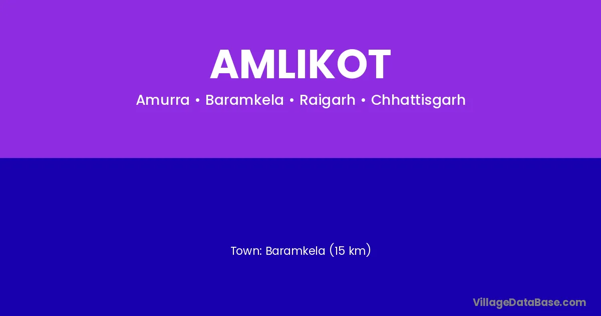 Baramkela (15 km) is the nearest town to Amlikot village for major economic activities and is located approximately 15 km away.