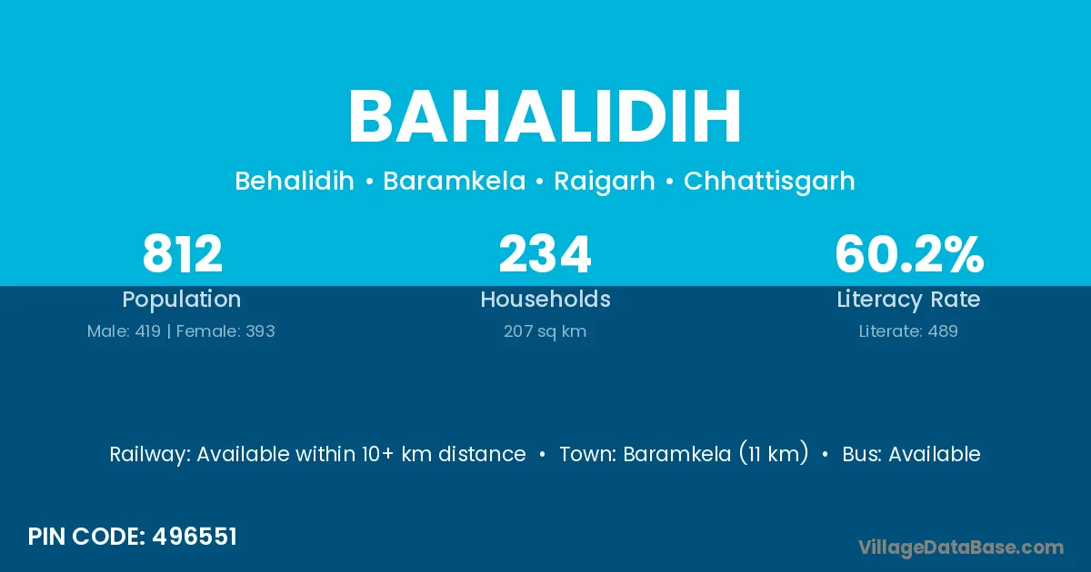 Baramkela (11 km) is the nearest town to Bahalidih village for major economic activities and is located approximately 11 km away.
