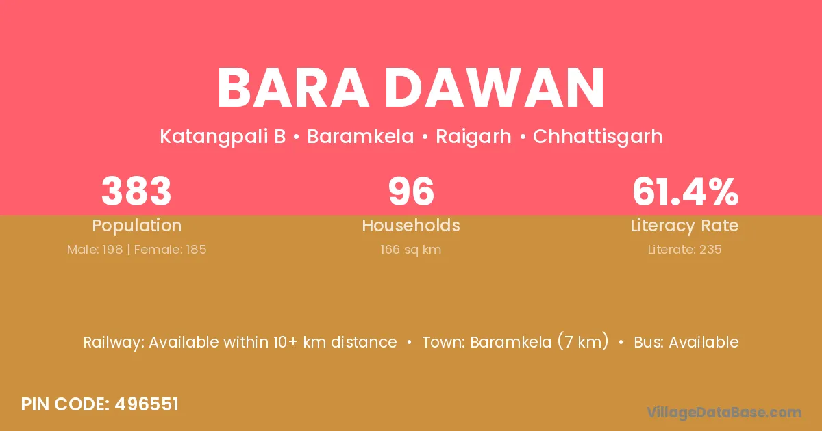 Baramkela (7 km) is the nearest town to Bara Dawan village for major economic activities and is located approximately 7 km away.