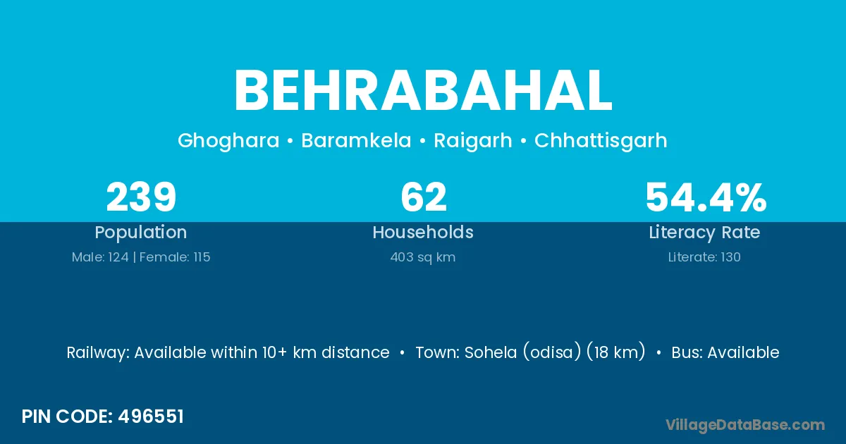 Behrabahal village has a total population of 239 people, of which 124 are males and 115 are females.