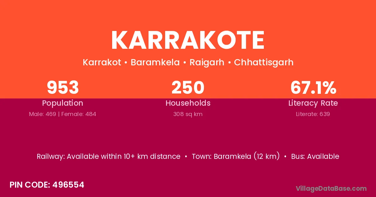 Karrakote village has a total population of 953 people, of which 469 are males and 484 are females.