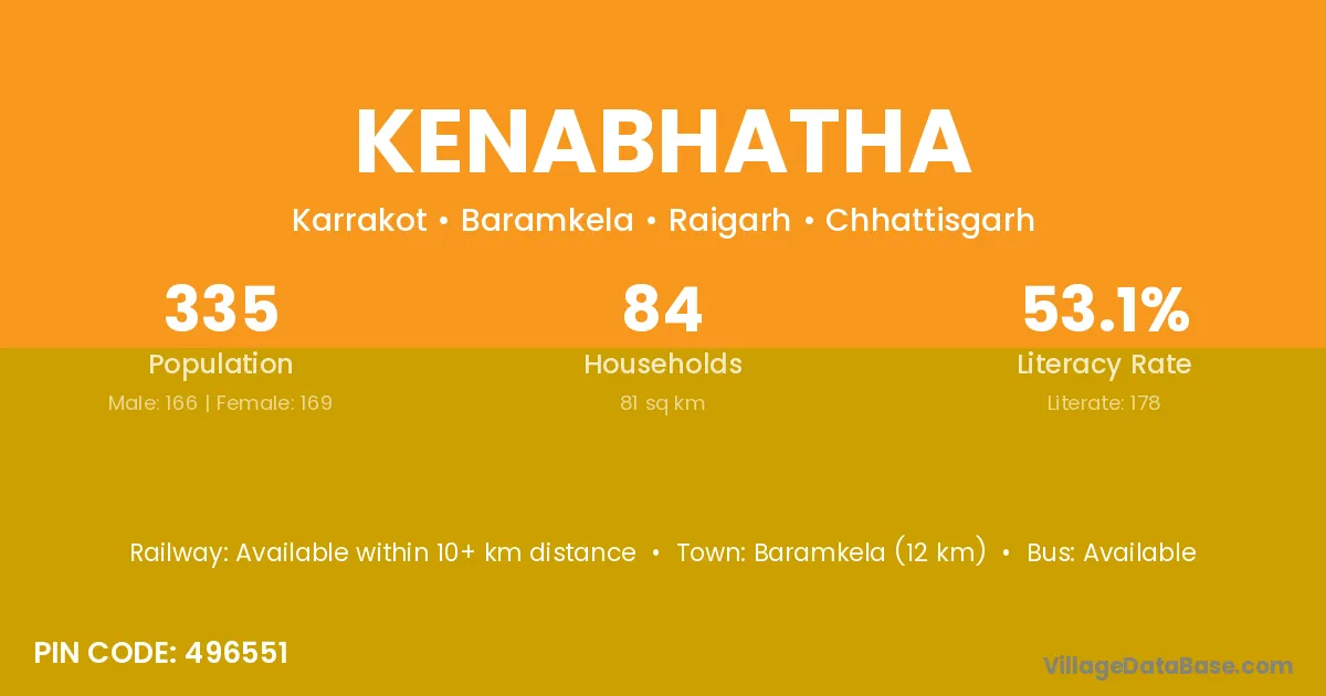 Baramkela (12 km) is the nearest town to Kenabhatha village for major economic activities and is located approximately 12 km away.