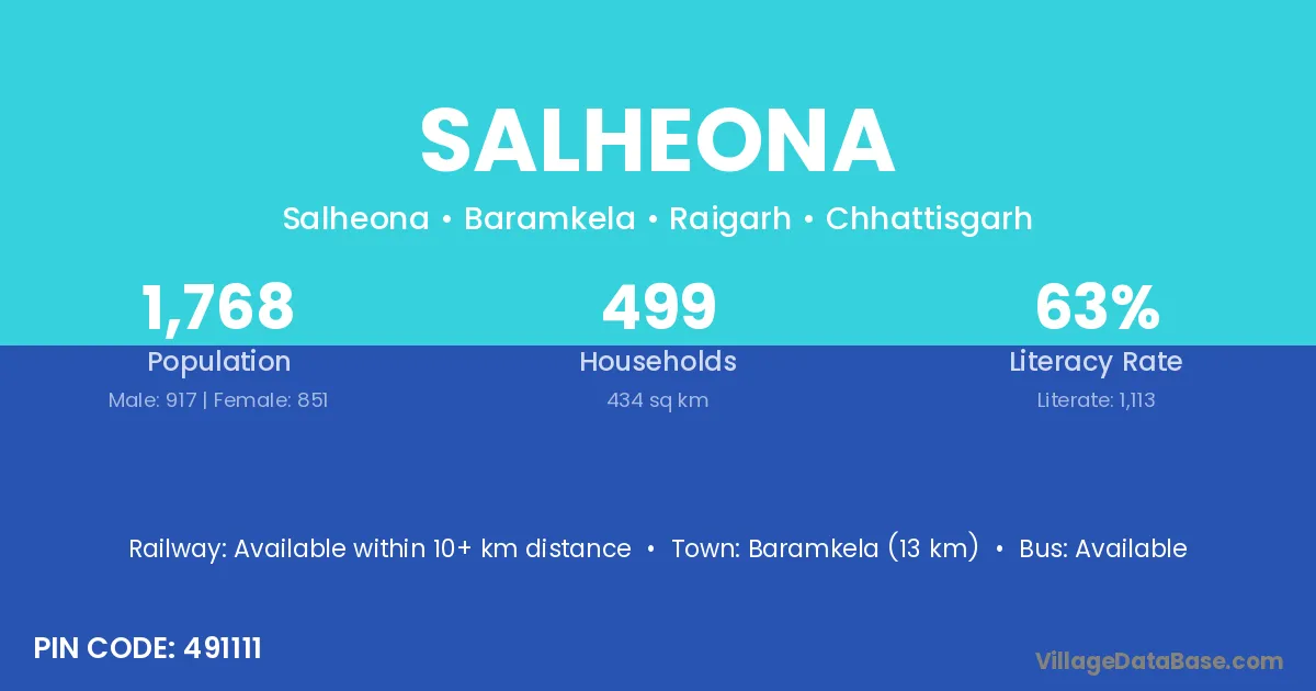 Baramkela (13 km) is the nearest town to Salheona village for major economic activities and is located approximately 13 km away.
