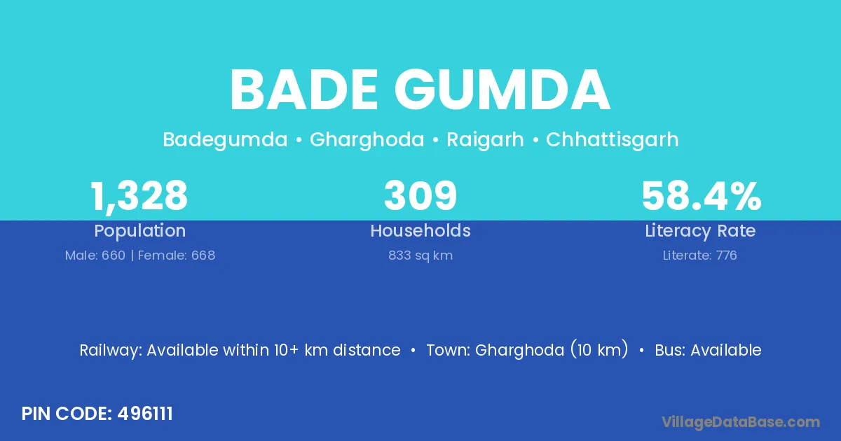 Bade Gumda village has a total population of 1,328 people, of which 660 are males and 668 are females.