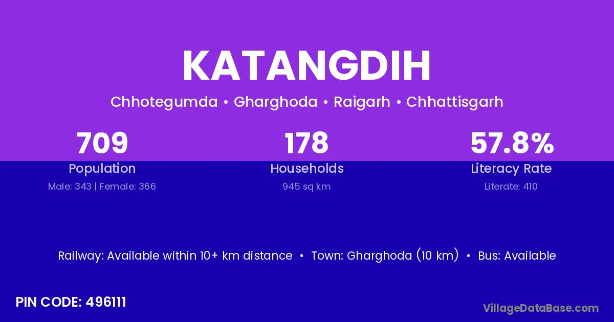 Gharghoda (10 km) is the nearest town to Katangdih village for major economic activities and is located approximately 10 km away.
