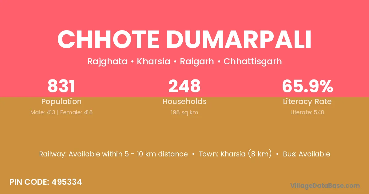 Chhote Dumarpali village has a total population of 831 people, of which 413 are males and 418 are females.