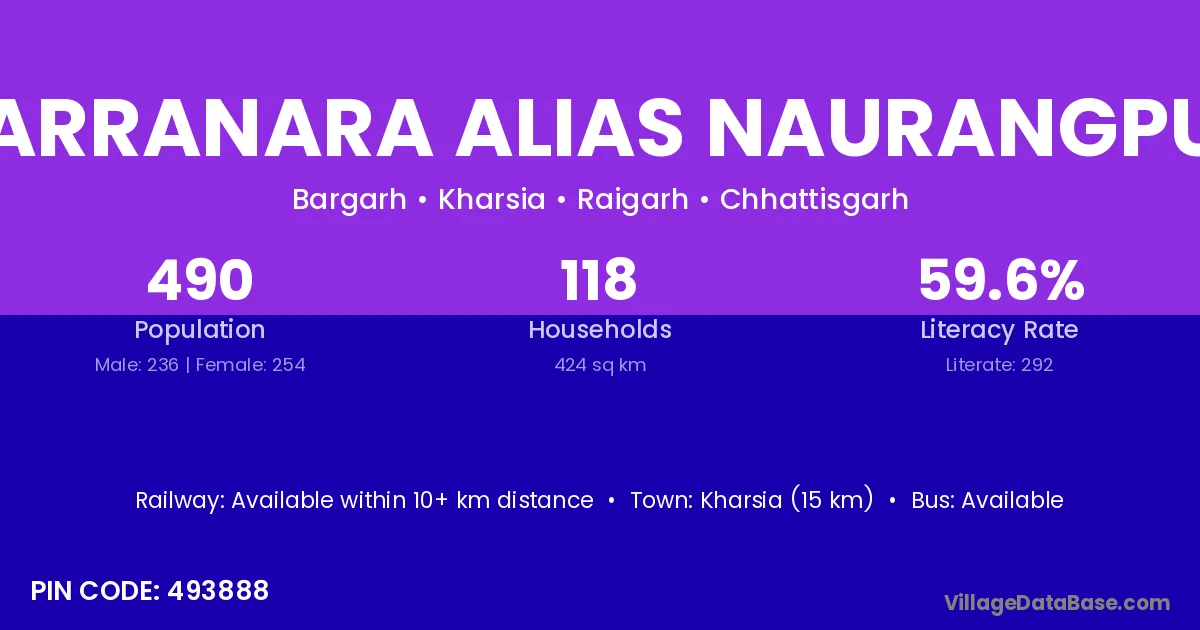 Karranara Alias Naurangpur village has a total population of 490 people, of which 236 are males and 254 are females.