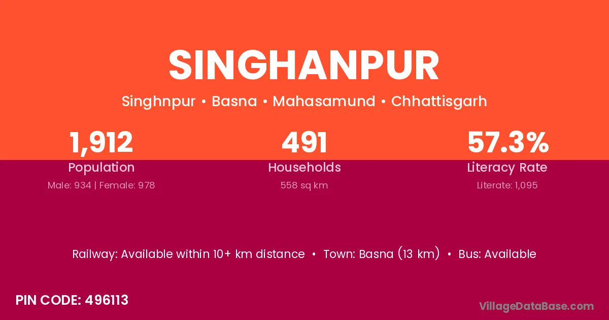 Kharsia (15 km) is the nearest town to Singhanpur village for major economic activities and is located approximately 15 km away.