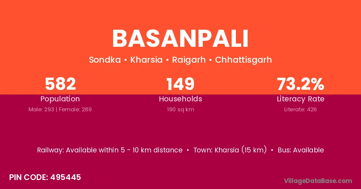 Raigarh (20 km) is the nearest town to Basanpali village for major economic activities and is located approximately 20 km away.