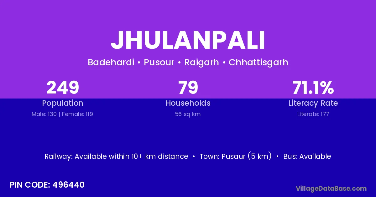 According to Census 2011 information, the village code of Jhulanpali village is 496440.