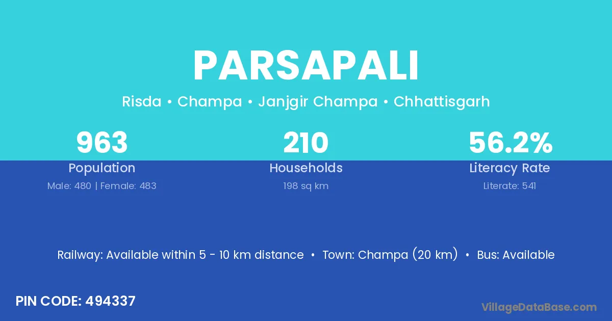 Parsapali village has a total population of 430 people, of which 218 are males and 212 are females.