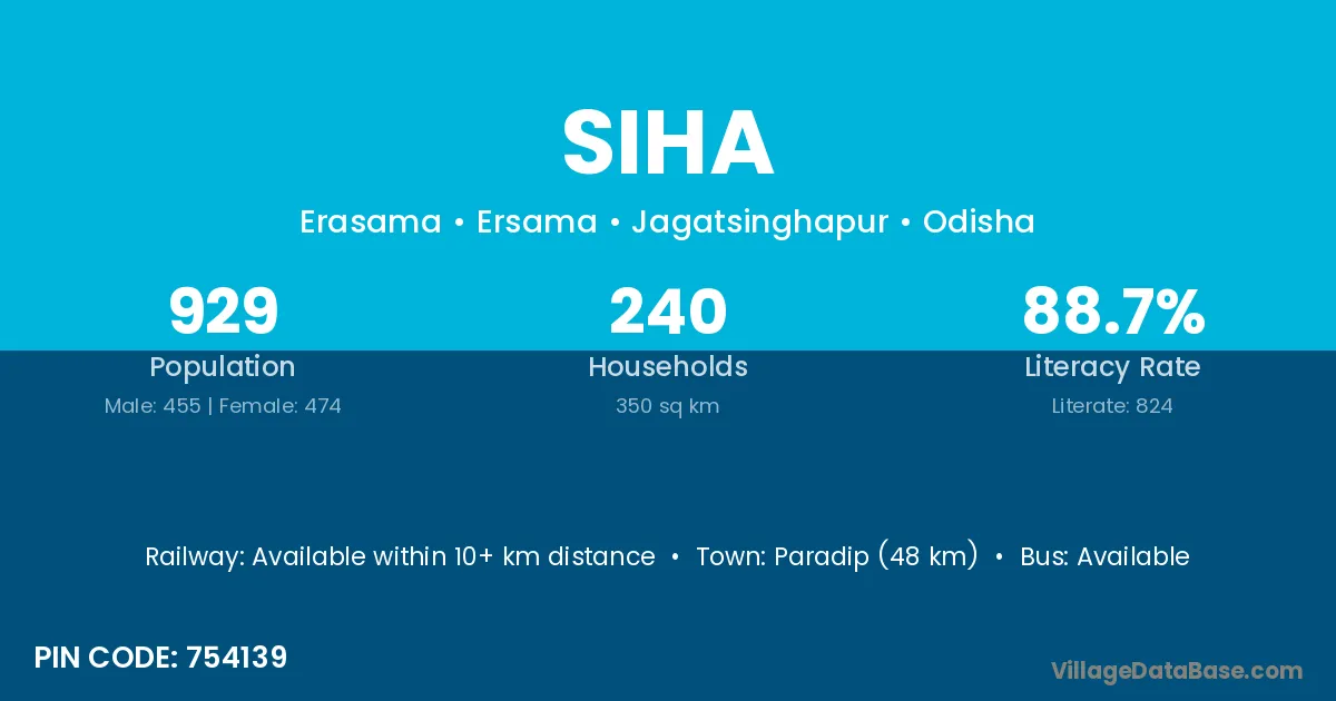 The literacy rate of Siha village is 81.81%. Male literacy stands at 83.83% and female literacy at 79.91%.