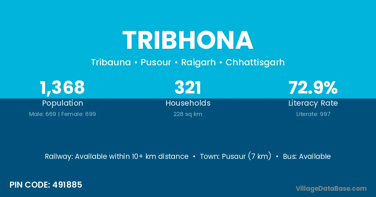 Pusaur (7 km) is the nearest town to Tribhona village for major economic activities and is located approximately 7 km away.