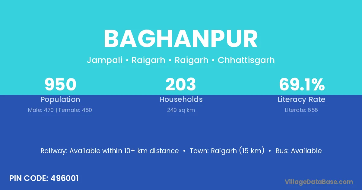 Sarangarh (12 km) is the nearest town to Baghanpur village for major economic activities and is located approximately 12 km away.