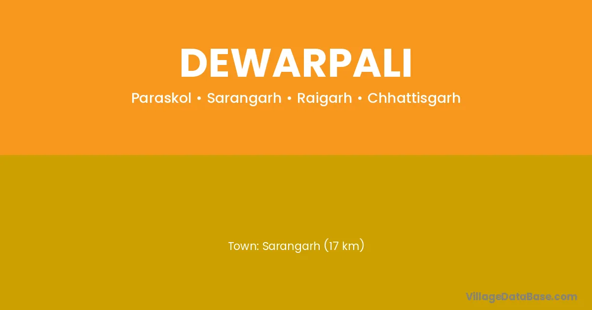 Sarangarh (17 km) is the nearest town to Dewarpali village for major economic activities and is located approximately 17 km away.
