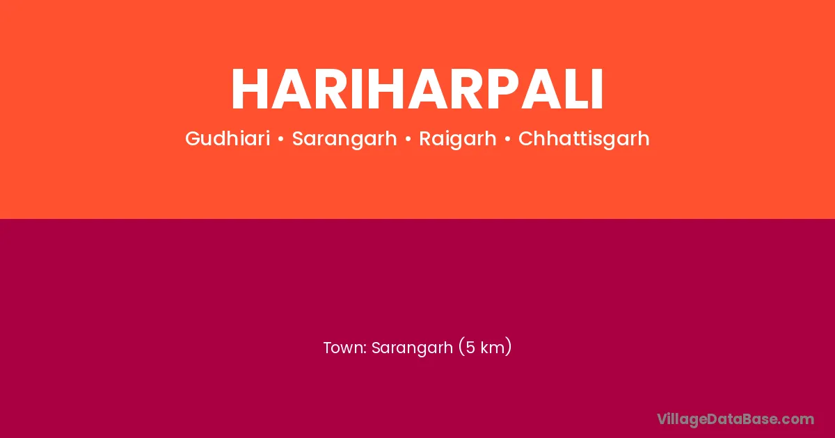 Sarangarh (5 km) is the nearest town to Hariharpali village for major economic activities and is located approximately 5 km away.
