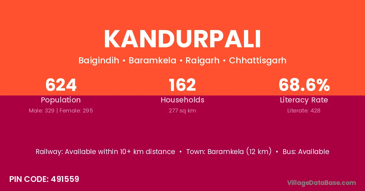 Sarangarh (12 km) is the nearest town to Kandurpali village for major economic activities and is located approximately 12 km away.