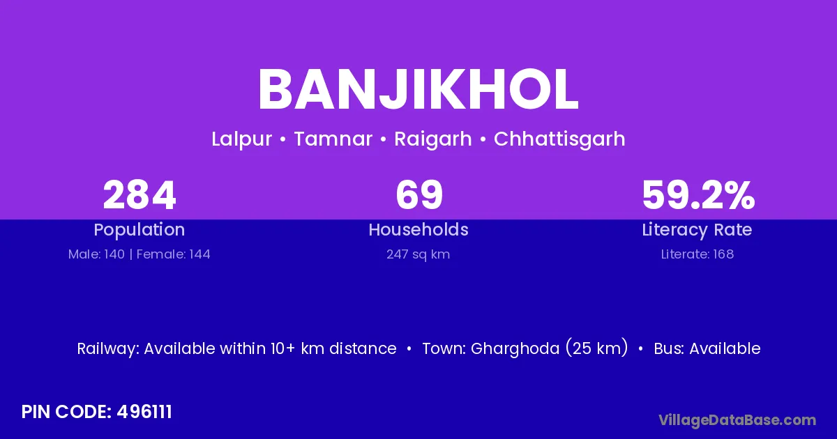 According to Census 2011 information, the village code of Banjikhol village is 496111.