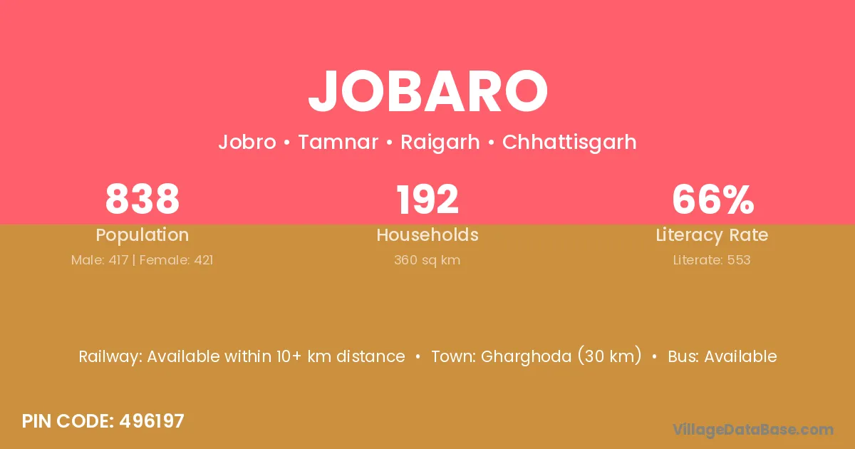 Jobaro village is located in the Tamnar Tehsil of the Raigarh district in Chhattisgarh .