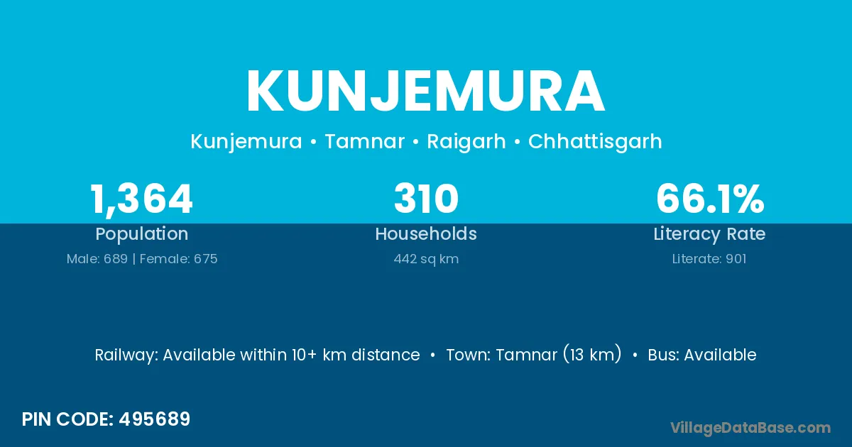 According to Census 2011 information, the village code of Kunjemura village is 495689.