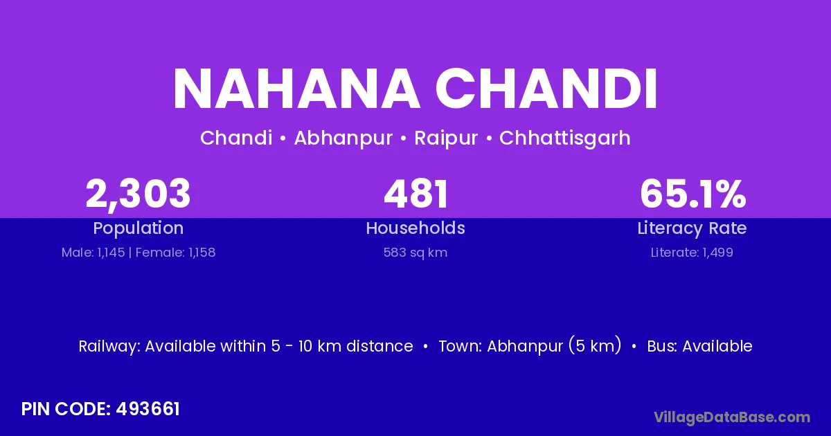 Abhanpur (5 km) is the nearest town to Nahana Chandi village for major economic activities and is located approximately 5 km away.