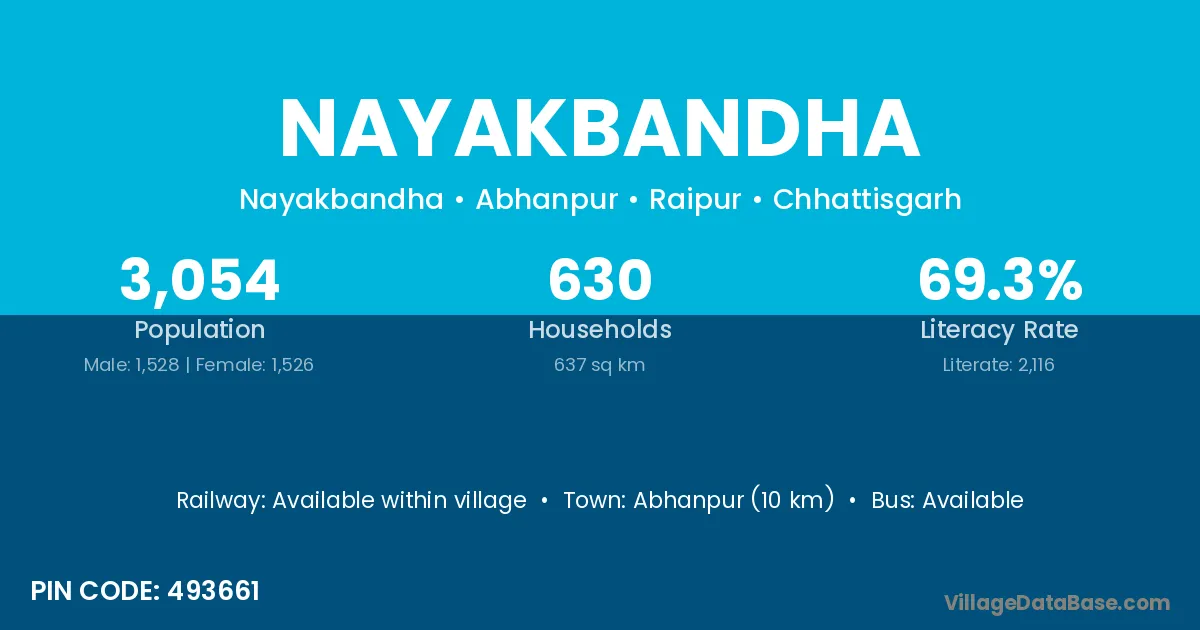 Abhanpur (10 km) is the nearest town to Nayakbandha village for major economic activities and is located approximately 10 km away.
