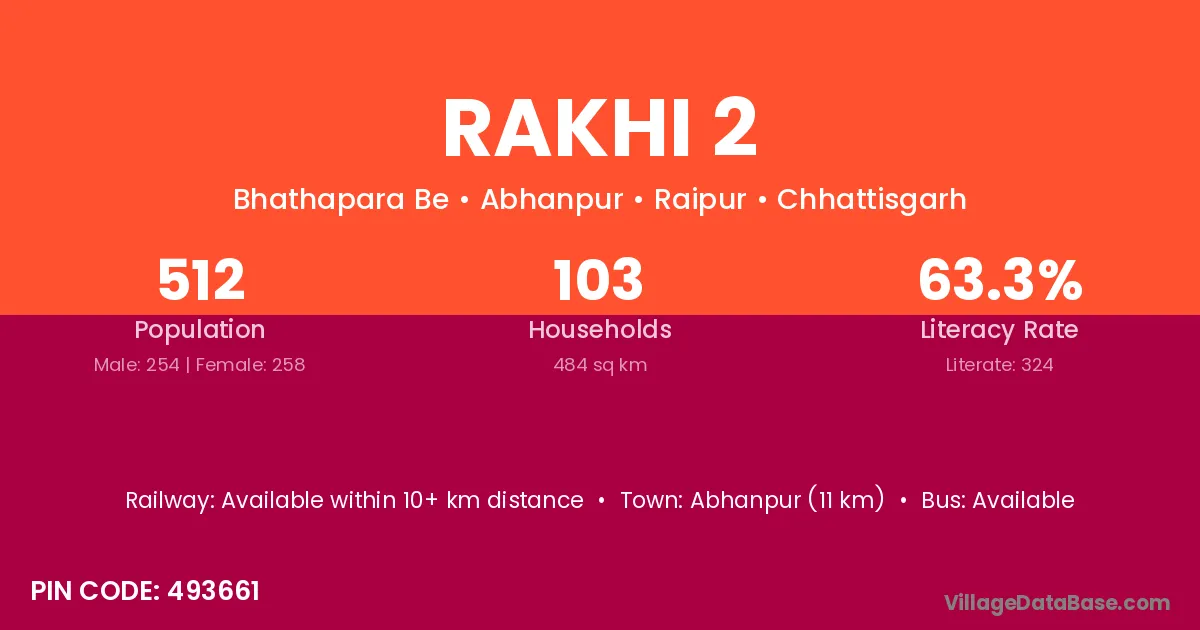Rakhi 2 village has a total population of 512 people, of which 254 are males and 258 are females.