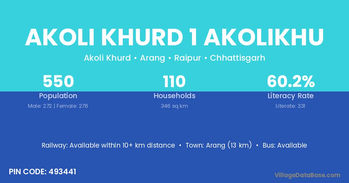 Akoli Khurd 1 Akolikhu village has a total population of 550 people, of which 272 are males and 278 are females.