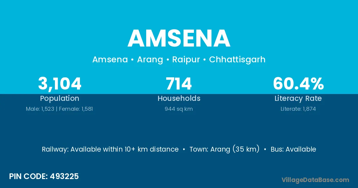 According to Census 2011 information, the village code of Amsena village is 493225.