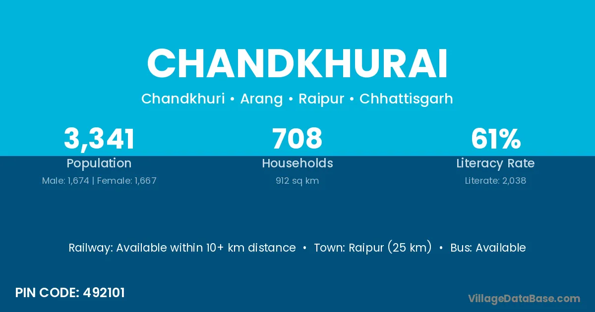 Raipur (25 km) is the nearest town to Chandkhurai village for major economic activities and is located approximately 25 km away.