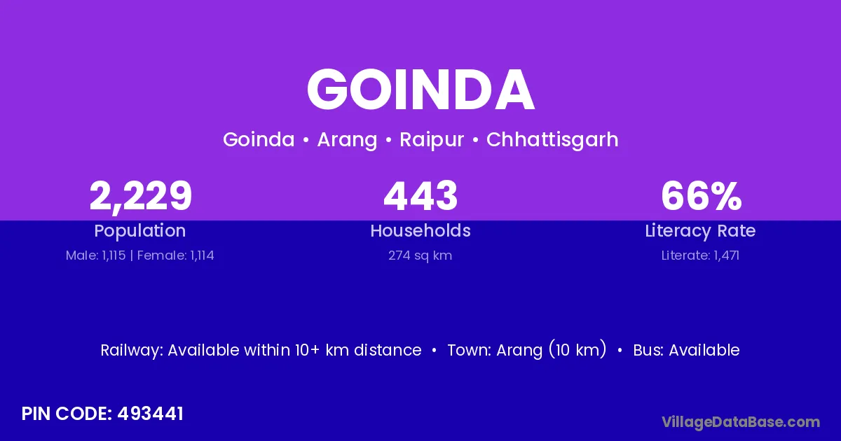 According to Census 2011 information, the village code of Goinda village is 493441.
