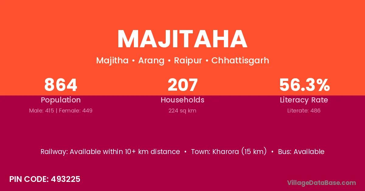 Kharora (15 km) is the nearest town to Majitaha village for major economic activities and is located approximately 15 km away.