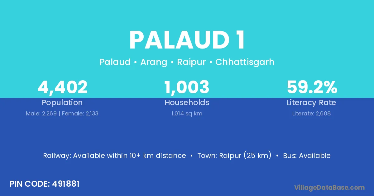 Raipur (25 km) is the nearest town to Palaud 1 village for major economic activities and is located approximately 25 km away.
