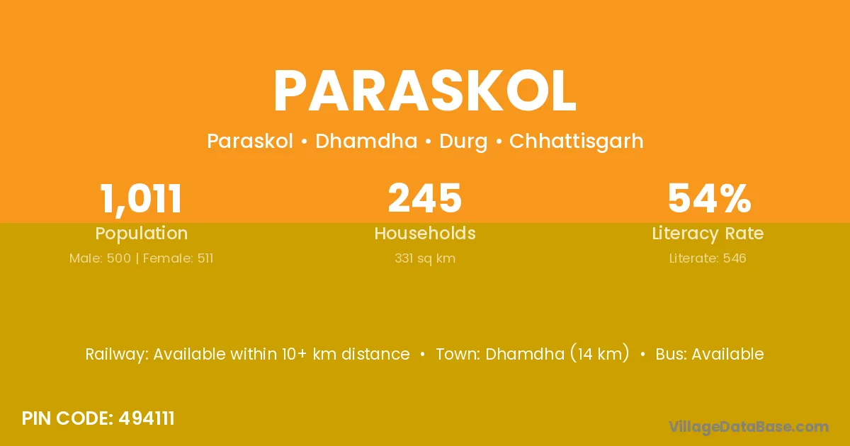 According to Census 2011 information, the village code of Paraskol village is 493225.