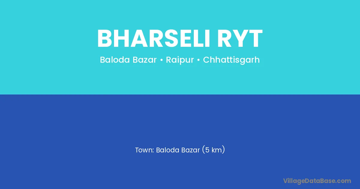 Baloda Bazar (5 km) is the nearest town to Bharseli Ryt village for major economic activities and is located approximately 5 km away.