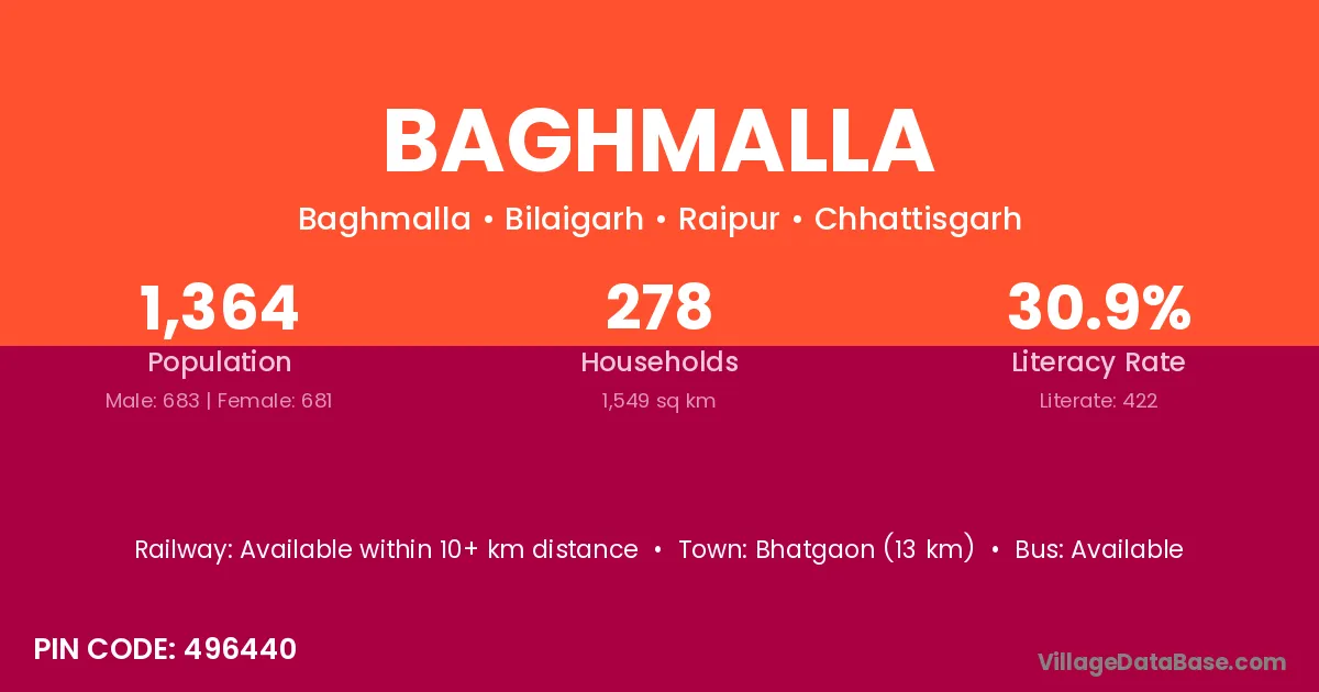 Baghmalla village has a total population of 1,364 people, of which 683 are males and 681 are females.