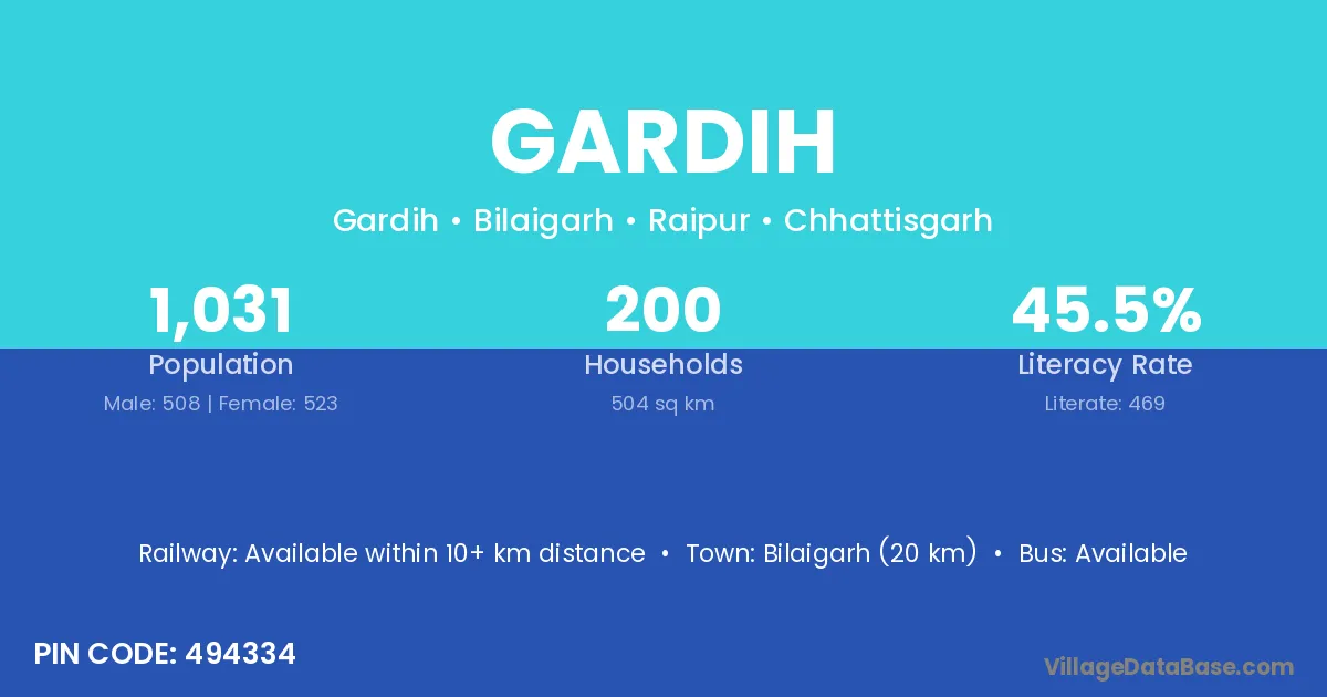 Bilaigarh (20 km) is the nearest town to Gardih village for major economic activities and is located approximately 20 km away.