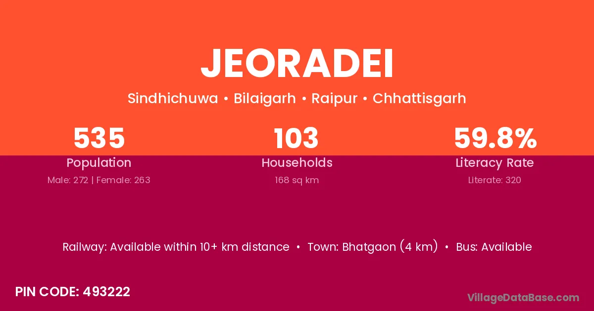 Jeoradei village has a total population of 535 people, of which 272 are males and 263 are females.
