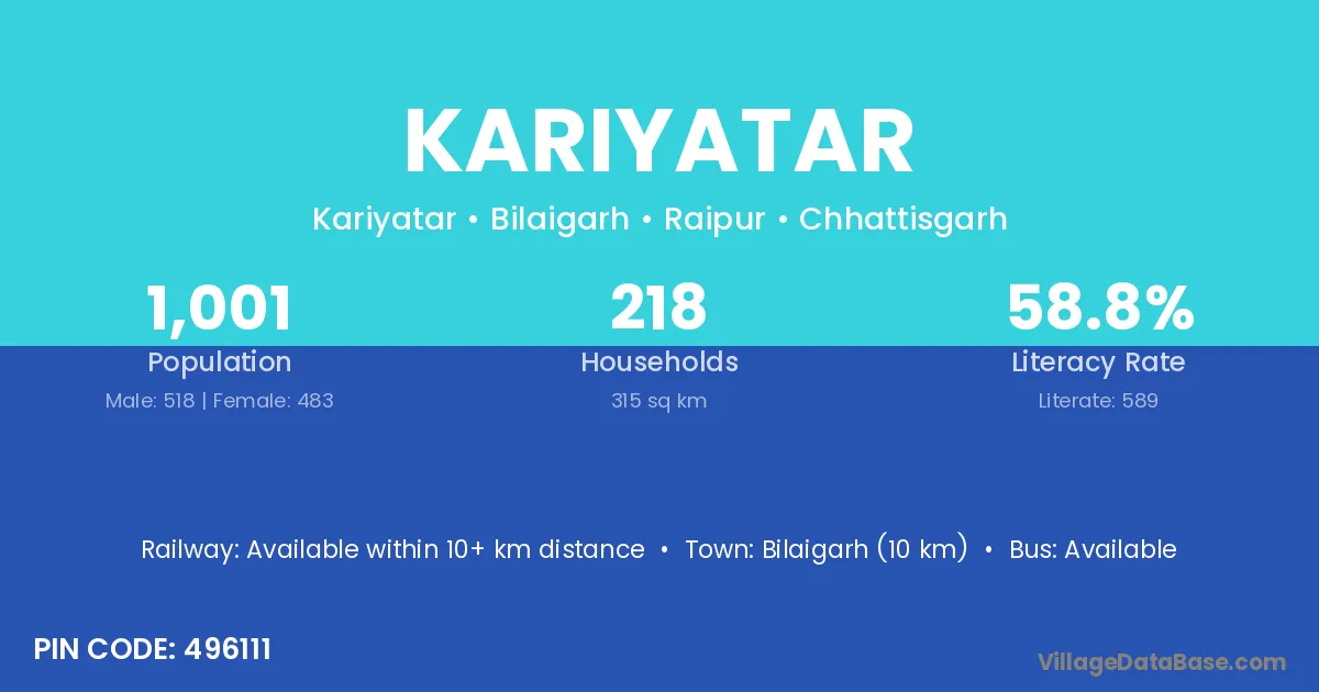 According to Census 2011 information, the village code of Kariyatar village is 496111.