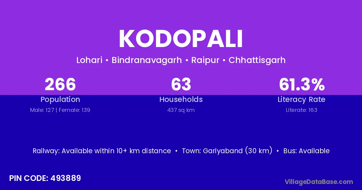 According to Census 2011 information, the village code of Kodopali village is 493222.